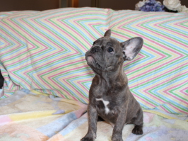 I am also happy to announce that Maeve and Gus welcomed a litter on July 6. The litter consists of 1 brindle male, 2 brindle females, 1 fawn female and 1 pied female.